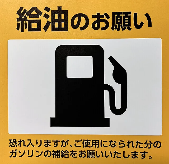 【燃料について】ご使用した分のガソリンにつきましては、給油をお願いしています。