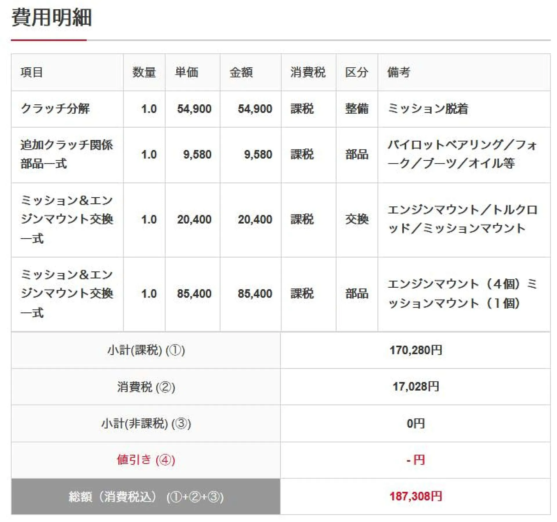 強化クラッチカバー/ディスク/レリーズベアリングは持ち込みです。
