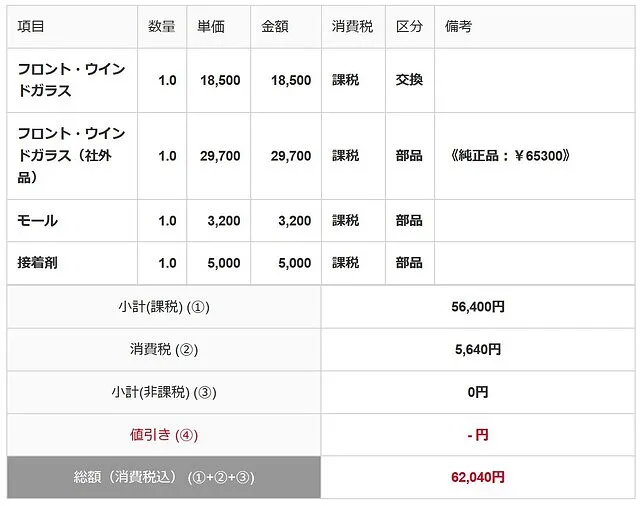 純正品は高額になりがちですが、品質も良くコスパの高い「社外品フロントガラス」を選択してしっかり対応させていただきました。