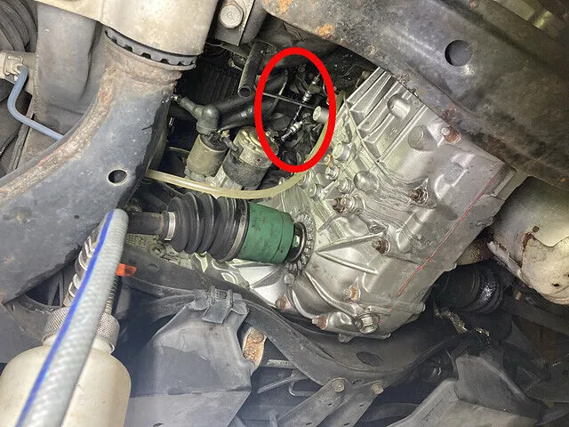 マニュアルミッションのクラッチ・フルード漏れ クラッチ・フルードが無くなると、クラッチペダルを踏んでもクラッチが切れなくなり、シフトギアの変速ができなくなります。
