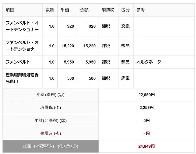 〔コメント〕 ベルトやテンショナーが劣化すると異音を発生させることが多く。エンジンの回転に比例するように音が出るので、いつもと違うと感じたら早めに点検して下さい。