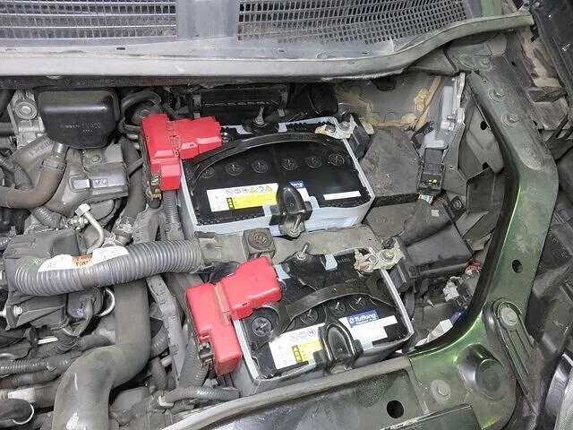 アイドリングストップ時に電装部品を稼働するためにメインバッテリーよりも大きなサブバッテリーが積載されています。