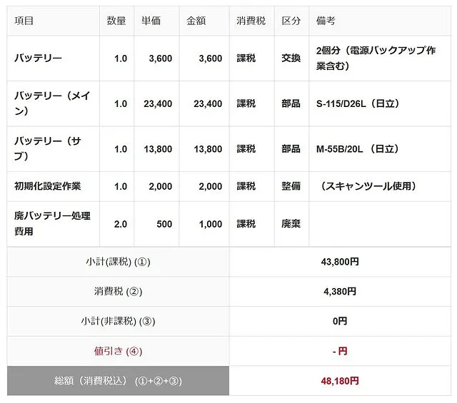バッテリー交換時期のため、バッテリーを交換します。