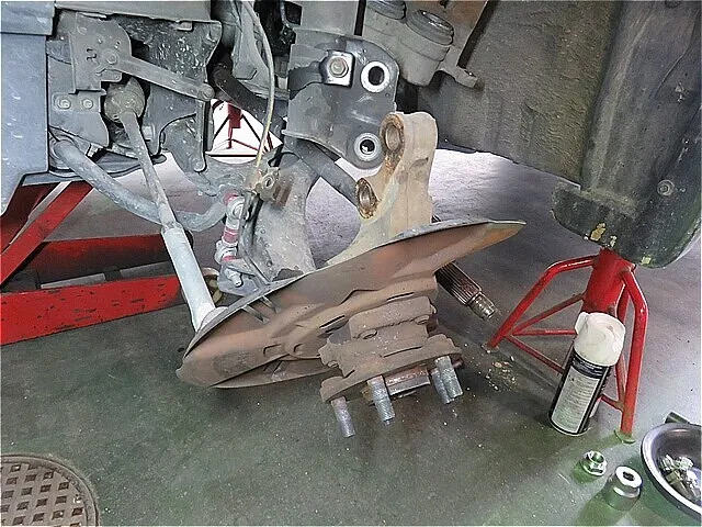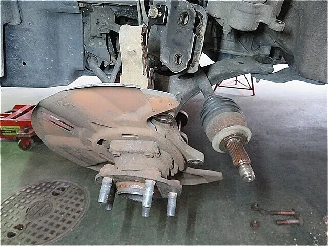 左フロント・ハブからドライブ・シャフトを切り離します。