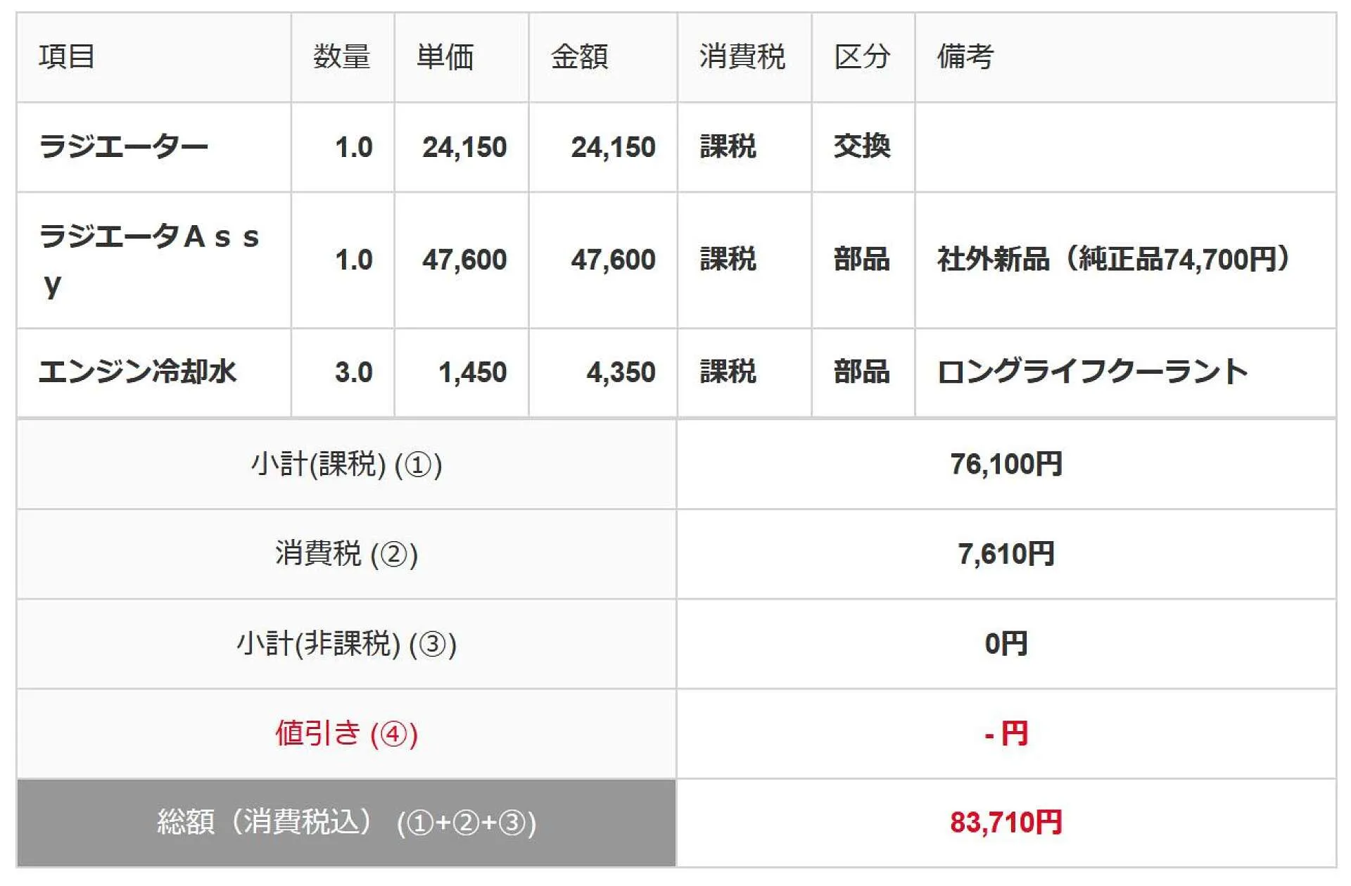 できるだけ費用を安くするため、新品ではなく社外新品にて交換致します。