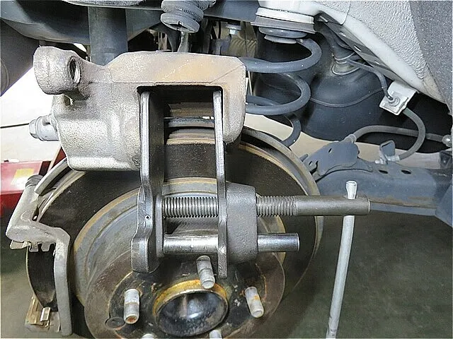キャリパーのピストンを特殊工具にて戻し初期状態にします。