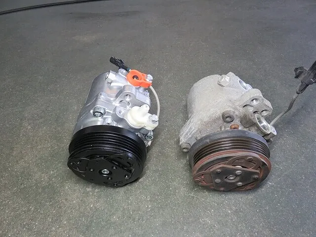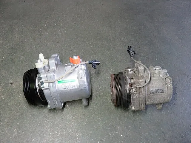 取り外したコンプレッサー」と「リビルト品のコンプレッサー」