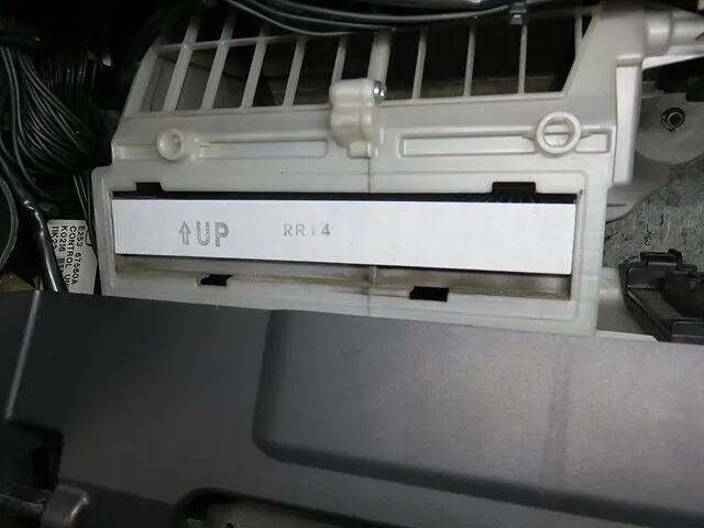 助手席前のグローボックス・カバーを取り外し、エアコン・フィルターケーススカバーを取り外し、エアコンフィルターを取り外します。