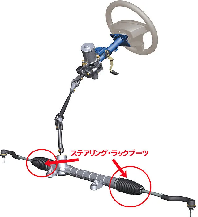 車検の際、ステアリング・ラックブーツに亀裂や破れがあると不合格となります。