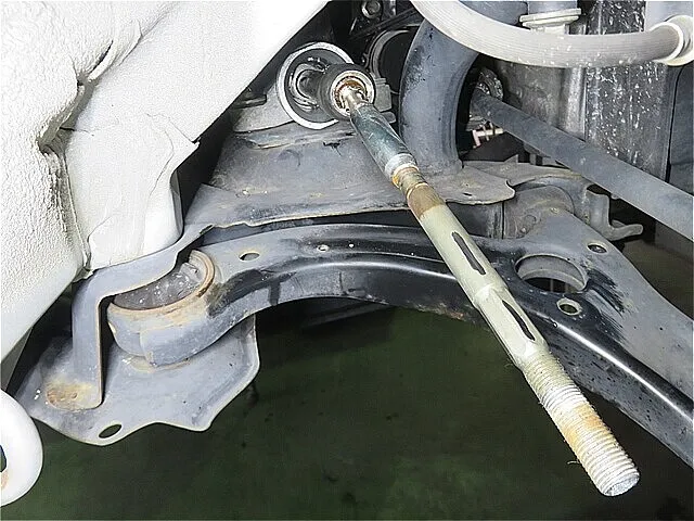 タイロッドエンド・ジョイント部とナックルアームを特殊工具(タイロッドエンド・プーラー)を使用して取り外します。