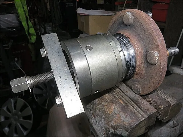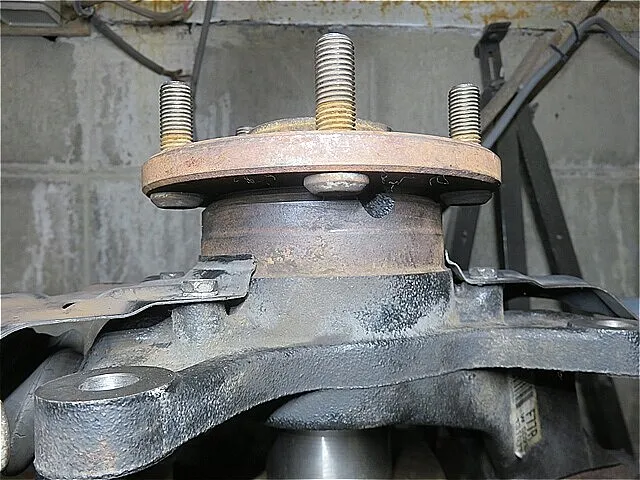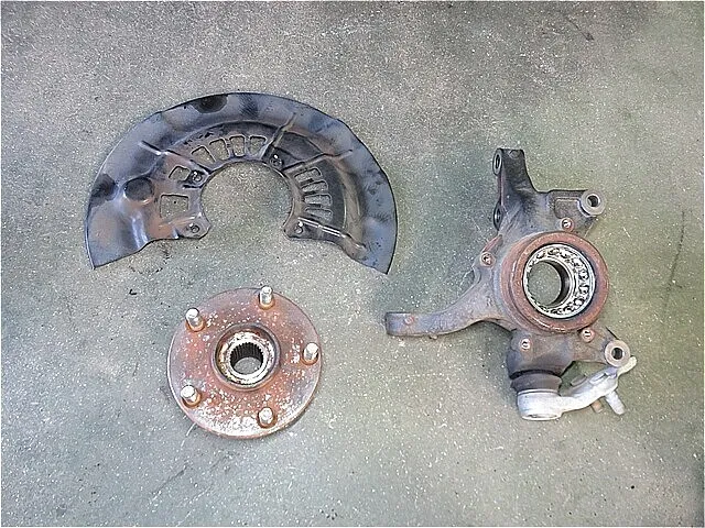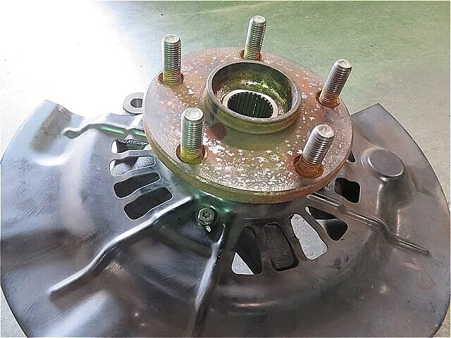 フロント・ナックルASSYから「圧入されたハブASSY」を(特殊工具:フロントハブ・プーラー)を使用して取り外し、バッキングプレートも取り外します。