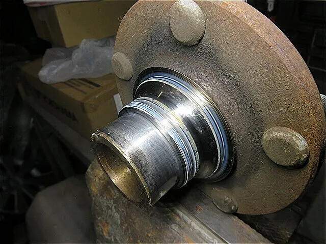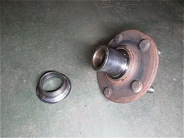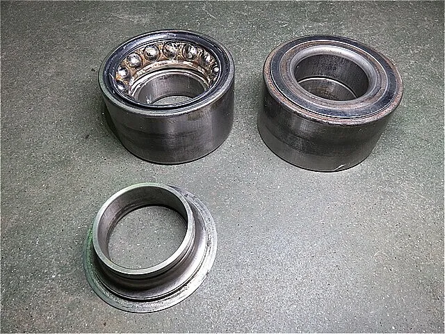 ハブ・ベアリングへハブを圧入しながら慎重に組み付けます。(プレス機を使用します。)