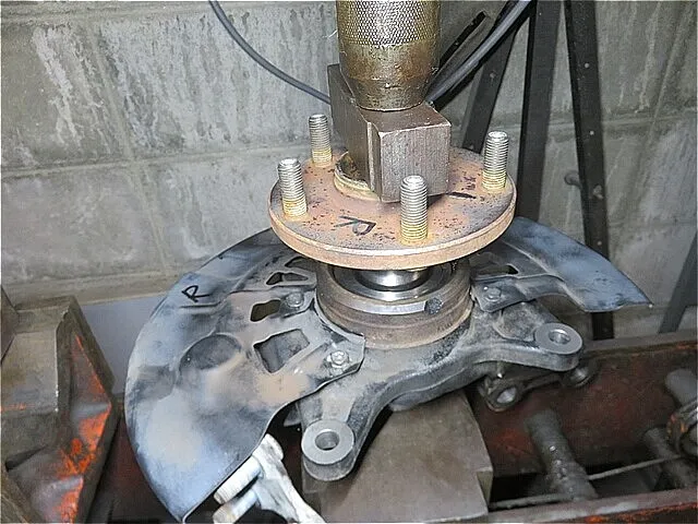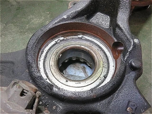 フロント・ナックルASSYから「圧入されたハブ・ベアリング」を取り外します。(プレス機を使用します。)