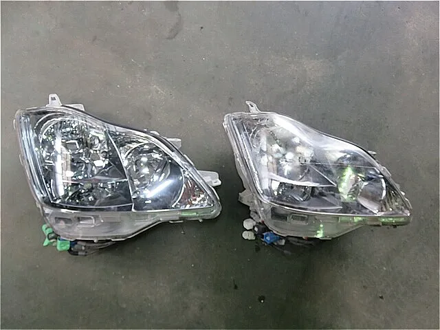 右ヘッドライト(リサイクル品)と左ヘッドライト共に黄ばみ除去のため、ヘッドライト・クリーニングとコーティング加工施工しました。