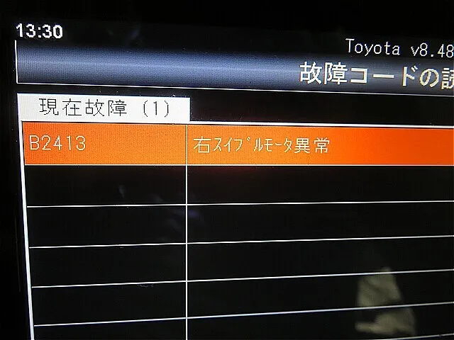 ダイアグ・コードの読み取り結果、エラーコード B2413「右スイブルモーター異常」と表示されました。