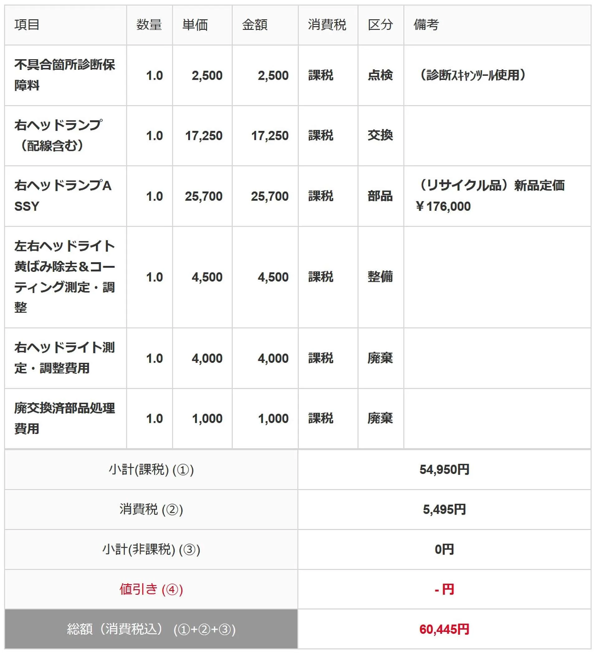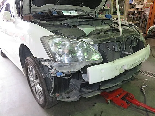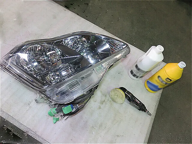 右ヘッドライトを中古品(リサイクル部品)と交換します。