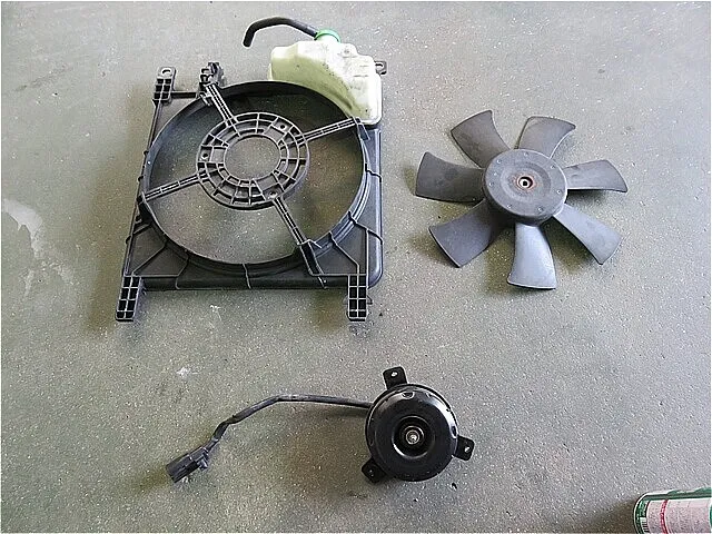 【整備:交換】ラジエーターファン・モータ(エアコン・コンデンサ冷却兼用)交換します。