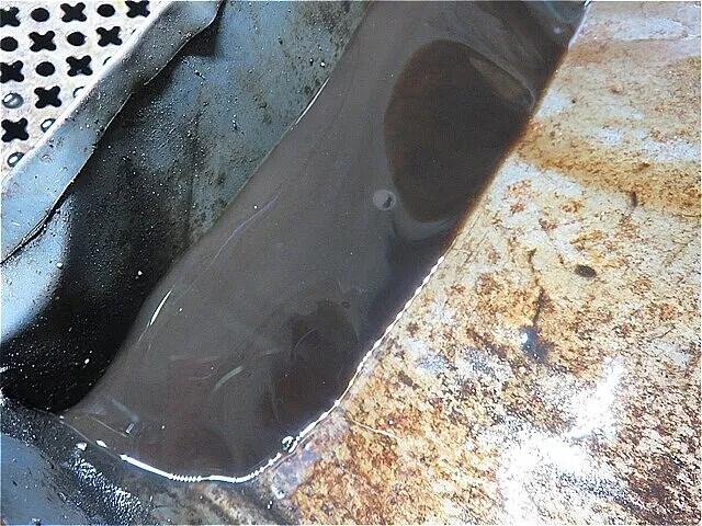 【単体点検】抜いたATフルードは、ひどく汚れて鉄粉が混じっていたため、ATフルードのサイクル配管内部をクリーニングしました。