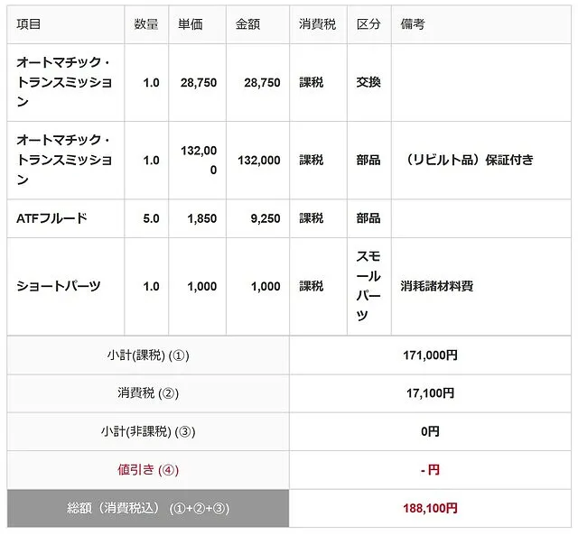 ATミッション本体は、リビルト品(トルクコンバーター付き)にて交換致します。