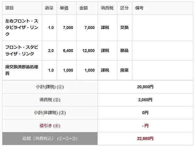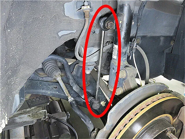 点検結果、スタビライザーリンクのボールジョイント(下部)にガタがありました。