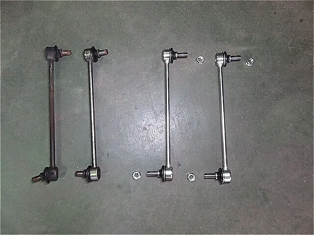 (取り外しスタビライザーリンクと新しいスタビライザーリンクと取り付けナット)