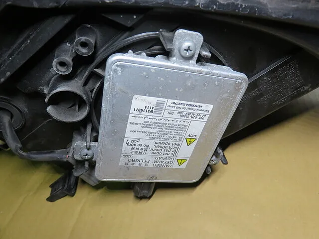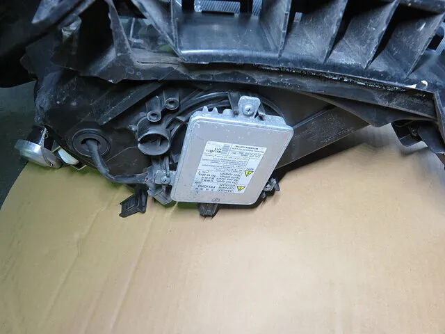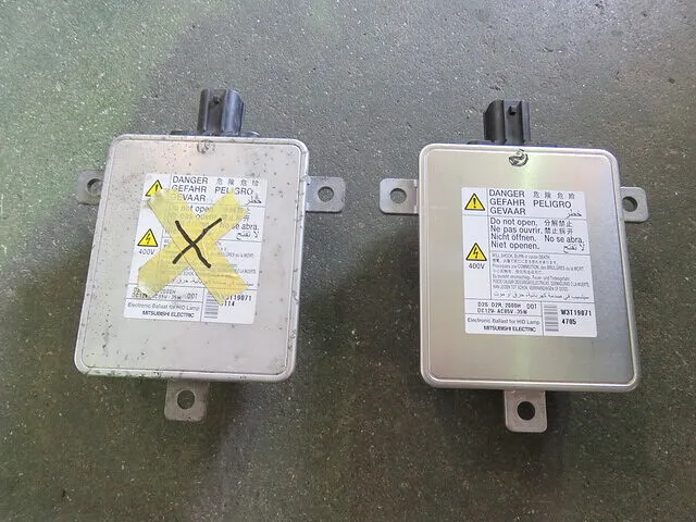 「故障したヘッドライト・コントロール・ユニット(バラスト)」と「新品部品」