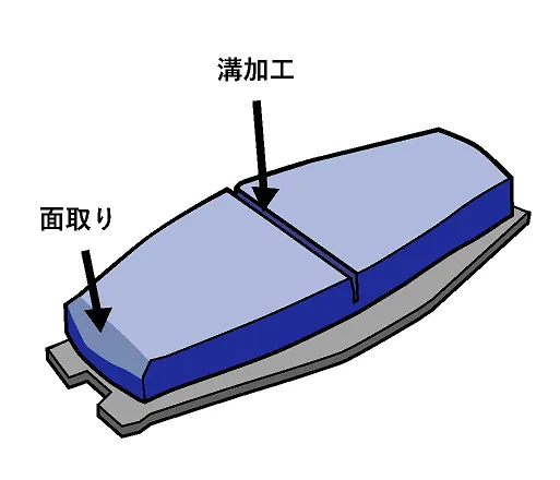 ディスクプレートとブレーキパッドの接触面を均一にするため、ブレーキパッドの角部分を「面取り加工」いたします。