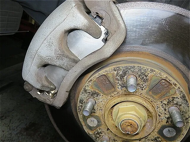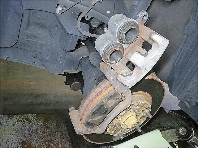 ブレーキを診断した結果、フロント・ブレーキ関係の部品にサビや劣化が見られ、その影響でブレーキ鳴きが発生していました。