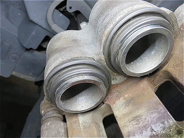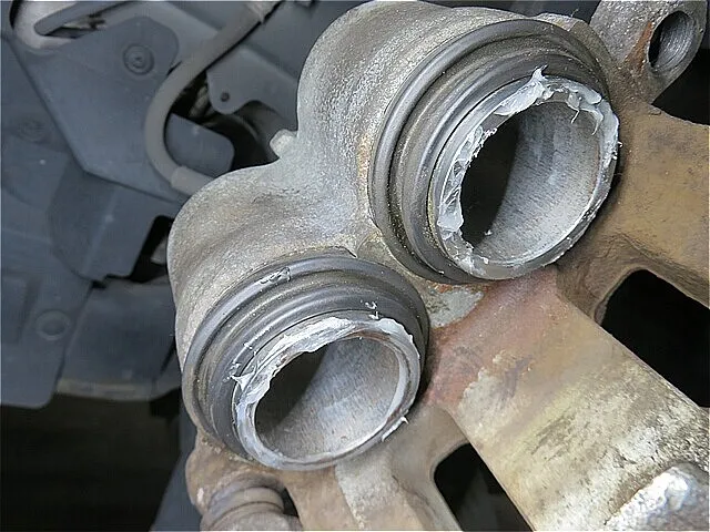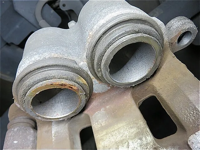 ブレーキ・キャリパー取付部のスラストピンをクリーニングして、グリスアップします。