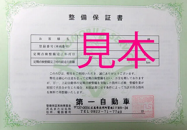 第一自動車へは12ヶ月点検と整備後も、しっかりサポートの整備保障で安心です。