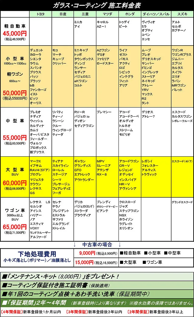 コーティング専用「メンテナンスキット」プレゼントいたします。(¥5,000相当)