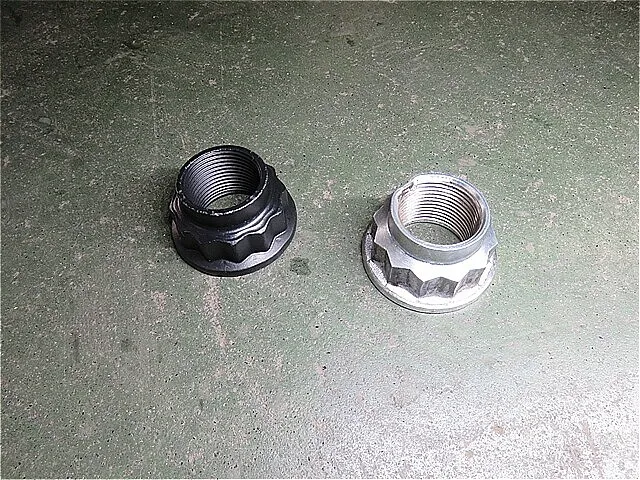 右ドライブシャフトを組み付けます。 右ハブ・ナットを交換後、足廻りがグリス付着の為、スチーム洗浄をします。