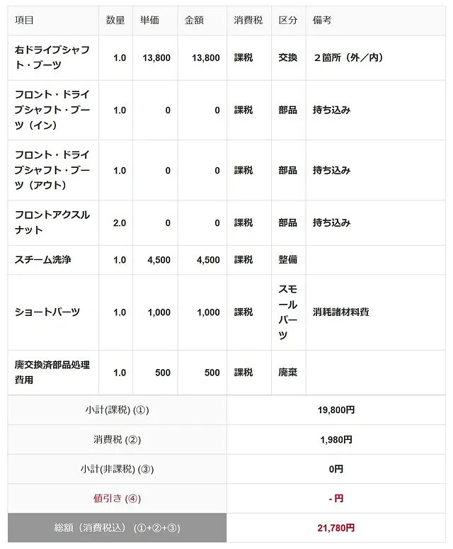右ドライブシャフト・ブーツの破れのため、交換します。