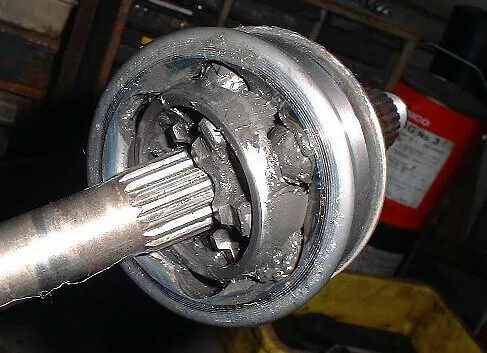 右ドライブシャフト・ジョイント部を分解・清掃・ベアリング・グリスアップします。(外/内)2箇所