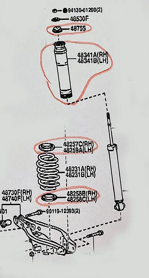 ※アブソーバ交換だけでなく、純正のアッパマウント/スラストベアリング等は、同時交換をお勧めしています。