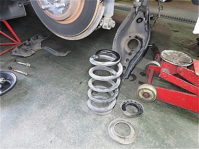 リヤ足廻りを分解し、リヤ・アブソーバ-/コイルスプリングを取り外します。