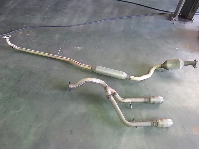 取り外したエキゾースト・フロントパイプとエキゾースト・メインマフラーです。